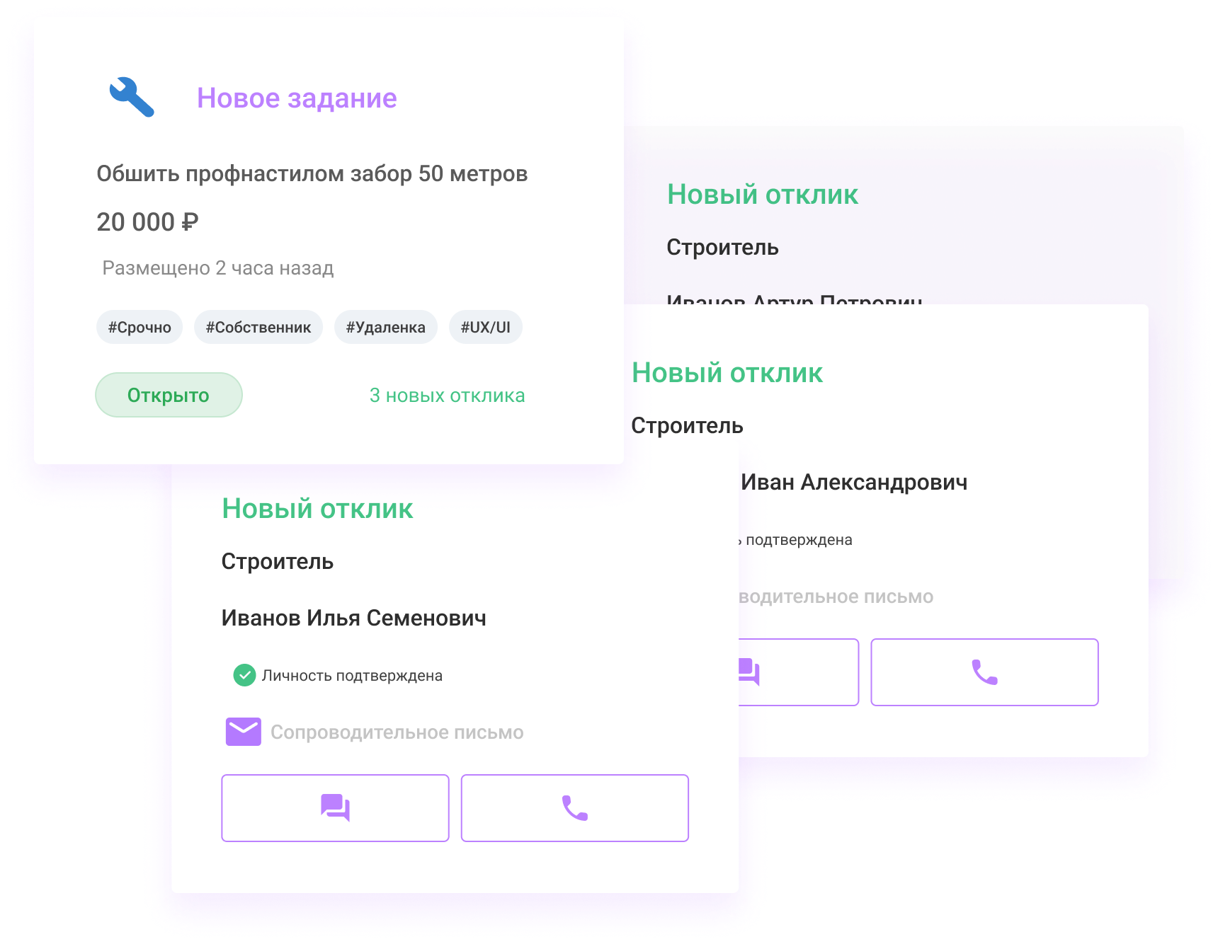 Обсудите задачу в чате и выберите подходящего исполнителя